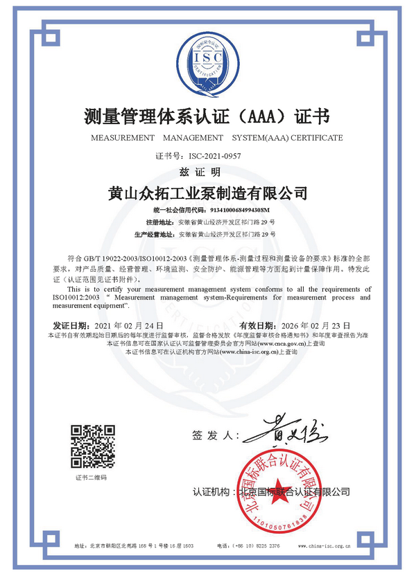 眾拓公司分別獲得企業(yè)信用等級AAA級認(rèn)證證書、測量管理體系認(rèn)證AAA級證書、售后服務(wù)五星級認(rèn)證證書。